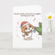 With his Santa hat tipped just right and a cosy striped scarf, he happily decorates the Christmas tree while pastel hearts and sparkles float around him. His playful expression and tiny tongue make the moment even more charming.