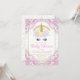 Sweet unicorn baby shower invitations with adorable pink floral unicorn face and eyes with gold horn on a rainbow and pastel dot and pink swirl background. These cute unicorn baby shower invitations are easily customised for your event by simply adding your details.