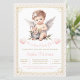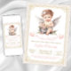 Valentine baby shower invitation with sweet baby girl cherub and pink hearts on a heart background. Simply add your event details.