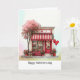 Give your Valentine your love with this sweet folded greeting card printed with a quirky little shop scene filled with lots of cute hearts, balloons and flowers details. Watercolor style illustration has an abstract pastel background front and back. Created in a palette of mostly red and pink colors, with your choice of sizes. Editable text on front and inside.