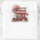 Accent your valentine crafts of stationery with this sticker printed with a quirky little shop scene filled with lots of cute little hearts, balloons and flowers details. Watercolor style illustration has an abstract pastel background. Your choice of 2 sizes in several shapes.
