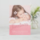 Cute Sweet Valentine Typography Baby Birth Photo Birth Announcement in sweet shades of strawberry pink and raspberry with a pattern of sweet hearts on the back.