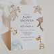Fun baby shower invitation featuring watercolor baby toys including gender neutral stuffed animals. Personalise with your information or click "Click to customise further" to edit font styles, size and colours.