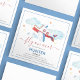 Cute aeroplane birthday invitation with a birthday celebration template that is easy to personalise.Featuring a red white and blue aeroplane, clouds, stars and text that reads 'fly on over'in a script font. All font styles, sizes and background colour can be changed by clicking on the customise further link after personalising.