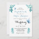 Design features watercolor floral mixed greenery foliage and branches in various shades of greens and blues with blue butterflies.