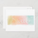 "Sweet" is hand lettered in white on watercolor background made of pastel colours. Back is blank for personal message and address.