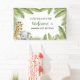 This high-quality, durable personalized welcome banner is an essential piece of party décor that can be used indoors as a stunning photo backdrop or outdoors as a lively greeting sign. Its adorable and gender-neutral design easily coordinates with all your other jungle party supplies. Easily customize the name, age, and event details on Zazzle to make it unique and ensure your little one's special day is truly unforgettable!