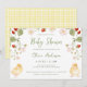 This stylish gender-neutral baby shower invitation features a delightful color palette of yellow and sage green. The invitation features lovely watercolor strawberry foliage and adorable baby chicks. The typography is simple yet elegant, complementing the overall theme. The back of the invitation features a coordinating yellow and white checkered background. To personalize the invitation, simply edit the template with your details and choose from the available paper options. Coordinating items are also available in our store or in the design collection.