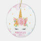 Personalise Dated watercolor floral unicorn Christmas Ornament featuring magical unicorn set on a white background with watercolor stains & stars