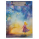 A sweet and whimsical clipboard. The watercolor illustration shows a young girl dressed in pink staring into the night sky.