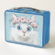 This is a standard metal lunchbox that appears to work just fine. We designed this box ourselves with an uploaded photo and custom text on the front and back. It looks absolutely beautiful except the front of the lunchbox is not centered like it shows in the photo. The print borders don't align with the inset flat part of the box where the preview photo online showed it perfectly centered in there. The back looks nice and centered though.