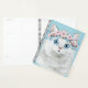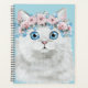 This design features a pretty white kitten wearing a pink and blue flower halo.