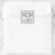 This design features a pretty white kitten wearing a pink and blue flower halo.