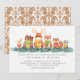 Watercolor winter Christmas woodland animals baby shower invitation for a baby girl or boy & a gender neutral baby shower with a brown damask back.
