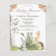 Celebrate the upcoming arrival of your new baby with friends and family when you invite them to your baby shower with this adorable woodland animals baby shower invitation postcard. This cute baby shower invite postcard for either a baby boy or a baby girl features pretty and rustic woodland greenery in watercolors with a rabbit, a deer, and a cute hedgehog. Personalise with your name and baby shower info. Perfect for a fall baby shower or winter baby shower. The back of this invitation postcard features a pre-printed name & return address for your convenience, as well as a request for Books for Baby with customisable text.