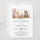 This cute baby shower invitation features adorable watercolor woodland animals - a fox, bunny rabbit, owl, and bear - with a tree. The invitation is set on a simple white background with the date, time, and location of the baby shower in a tasteful font. The adorable watercolor woodland animals and tree and leaves add a touch of whimsy and fun, and the overall design is perfect for celebrating the upcoming arrival of your little one with your loved ones in a rustic and enchanting way.