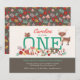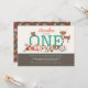 All the animals have gathered for a special first birthday, celebrate the day with this woodland animal invitation! Features adorable animals, including deer, fox, rabbit, racoon, and squirrel, with floral accents on a textured background.