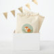 Perfect for a sweet woodland animal themed shower that she's sure to love. A lovely little baby fox is nestled all snug and cosy on a bed of leaves and branches in this sweet illustration by Kat Parrella. A lovely rustic, nature filled favour bag to match our coordinating baby shower invitations in the same design