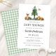 This adorable baby shower invitation features woodland-themed watercolor illustrations and vintage-inspired typography. The back of the card features a sage green and white gingham pattern that can be customized or removed. Additionally, the background and text colors are customizable. This design would be a perfect choice for a spring, summer, or fall baby shower.
