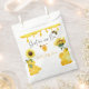 Sweet and trendy Bee Themed Gender Neutral Baby Shower Paper Bag featured watercolor yellow honey, bees, honeycombs, and sunflowersflower. Matching products you can find in the collection.