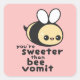 Super cute baby bumble bee with happy face and the love quote "You're sweeter than bee vomit."