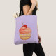 Lavender coloured cute tote bag with a cupcake and the message "sweeter than cupcakes".