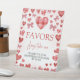 A sweetheart-themed favors table sign designed for baby showers. Featuring red hearts, bows, and elegant typography, this printable sign invites guests to take a favor while thanking them for celebrating the baby. Perfect for heart-themed or Valentine-inspired baby showers, it adds a charming and coordinated touch to the favors table and party décor.