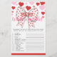 Bring fun and laughter to your celebration with our A Little Sweetheart Baby Word Scramble Game Card. Featuring a beautiful coquette bow with a red heart pattern surrounded by pink and red hearts, this game card is both charming and engaging.