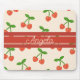 A playful repeating pattern of heart-shaped red cherries with green leaves on a soft textured background, bringing vintage charm and a touch of sweetness to any retro aesthetic.