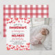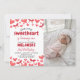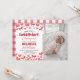 A sweetheart-themed first birthday invitation with photo, featuring red hearts, bows, and elegant typography. Perfect for celebrating a baby girl’s 1st birthday, this printable invitation includes space for a child’s photo and works beautifully for heart-themed or Valentine-inspired parties. Ideal for digital or print use, offering a warm and charming birthday announcement.