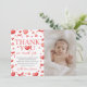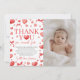 A sweetheart-themed first birthday photo thank you card featuring red watercolor hearts, bows, and elegant modern typography paired with a customizable baby photo. Designed to express appreciation for celebrating the special day and for thoughtful gifts. Ideal for heart-themed, girly, or sweet first birthday parties.