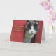 This card has a photograph if a grey and white cat looking through a faded red wooden fence. It has such a lonely look on it's face. The text on the front says, "Sweetheart, I'm lost without you" The inside text can be edited or left as is.