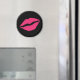 Fun and flirty pink lips on a black background decorate this magnet.