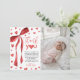 A beautiful way to say thanks! This photo thank you card features a watercolor red bow and hearts design with a spot for your birthday girl's photo. A sweet memento for guests from her "Sweetheart" themed first birthday party.
