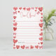A sweetheart-themed printable letter template featuring red hearts and bows with lined space for writing. Perfect for kids’ letters, birthday notes, Valentine messages, or keepsake notes from parents or grandparents. This editable-style printable works well for home printing and adds a charming heart-themed touch to personal messages for children.