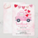 Cute Pink Sweetheart Valentine 1st Birthday Truck Balloon Invitation