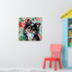 Chihuahua dog art print with vintage floral background in turquoise and coral red