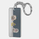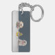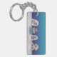 A delightful keychain for the dog lover or pet parent in your life. One side is a blue and purple gradient background with three mischievous pups eyeing a carousel of cupcakes. The other side is a grey gradient background with an adorable Maltipoo pup having all the candy and still eyeing the colourful cake while the Maltese Shih Tzu has but one candy for him.