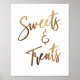 I've used a casual, modern, handwritten font to create a graphic typography overlay reading "Sweets & Treats". The image was embellished with a smooth faux gold foil effect. You may change the background to any colour you prefer.