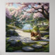 This whimsical poster features a peaceful frog blowing iridescent bubbles in a lush cherry blossom garden. Cherry blossoms mark the arrival of spring, a season of new beginnings and rebirth. Their short lifespan, blossoming for just a couple of weeks, serves as a powerful reminder of the transience of life and the importance of cherishing each moment. Layered oil acrylic style with heavy impasto textures and serene Japanese scenery.