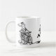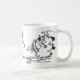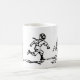 This triathlon inspired mug features cute black and white cartoon characters swimming, biking, and running.