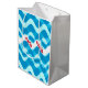 Swimming Coach theme gift bag. A Unique Swim Lesson Instructor present wrap. The Swimmer Teacher themed design has blue pool water waves with the words swim coach in red.