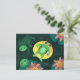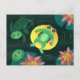Three green frogs go for a relaxing swim in the rich emerald waters of a summer pound. The bright yellow inner tube and a frog's red fruit punch beverage, bring a splash of colour to the delightful scene. Original illustration by Noël Snow