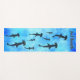 Swim in the Ocean with the Sharks Yoga Mat. The beautiful view from below as a school of sharks gracefully swim along the open sea silhouetted by a Sun above. The artsy joys of nautical nature, the ocean, and the blue underwater world. The added inspirational quote can be changed or you can add your name their instead. A wonderful mat for anyone who loves animals and the ocean.