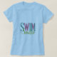 This t-shirt design features the text "Swim Smiles" in a fun, mismatched colour scheme. Some letters are bold and solid, while others have a playful watercolor texture, creating a unique and eye-catching look.