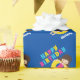 Awesome kids swimming pool party custom Happy Birthday wrapping paper for a brunette child on the swim team during the summer. Features a bright, fun pop of colours and an adorable swimming girl in an inner tube. Customise for a special children's gift.