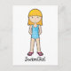 This cute girl is ready to dive into to pool! She's wearing her favourite blue with white swirls bathing suit and funky pink flip-flops.