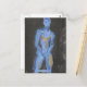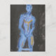 A painting of a slim young man with a swimmer's build, rendered in blue with gold highlights.