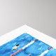 Watercolor painting of swimmers during warm ups at a swim meet.