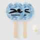 Swimming Design Hand Fans with customisable text on both sides of each piece.